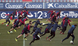 Calentamiento pre partido del C.A.Osasuna previo al partido de liga 123 disputado contra el Almería en el estado del Sadar.