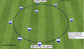 Circulo del tamaño correcto para la edad y la capacidad + 2 jugadores en el centro + 2 balones