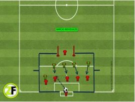 Jugamos un 5vs5 con 2 porterías grandes defendidas por los porteros.