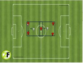 En un espacio reducido rectangular jugamos una posesión 5vs2.