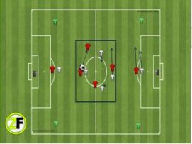 En un espacio rectangular de 45 x75 colocamos un subespacio cuadrado en la zona intermedia del ejercicio y 2 porterías en la profundidad de cada lado. Ejercicio polarizado.